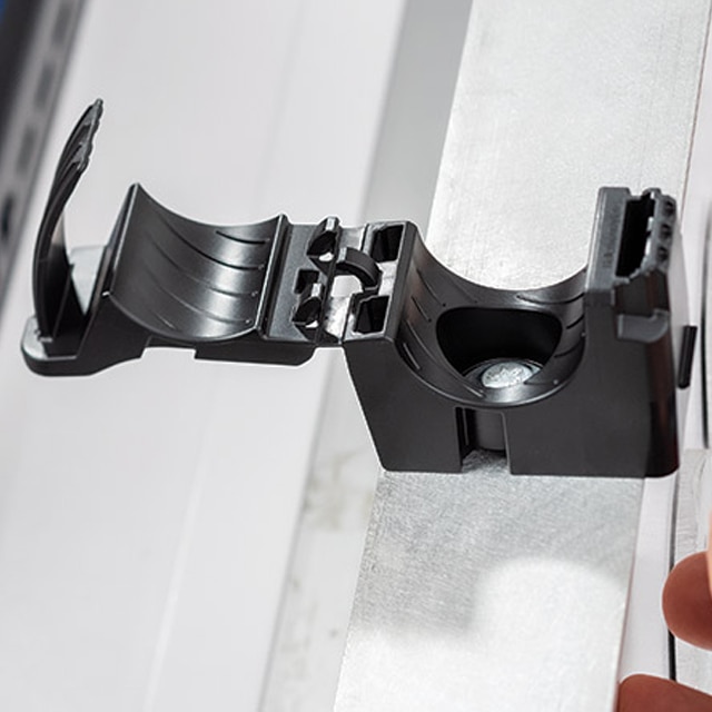 Les supports de serrage réglables se montent par simple rotation pour acheminer les câbles le long des systèmes de traverse.