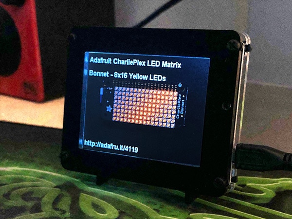 Grab the mini oval speaker and connect it to the speaker port on the back of the PyPortal.