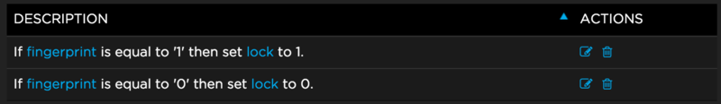 Then, we still need a way to link the fingerprint feed, and the lock feed. We want the lock feed to take the '1' value when the fingerprint feed goes to 1, and vice-versa.