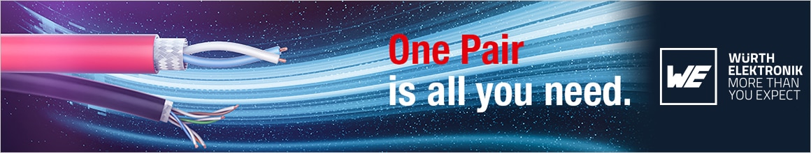 Single Pair Ethernet embodies a new type of data transmission. Contrary to Multipair Ethernet, only two wires are needed. The small number of wires ensures thinner cable diameters and reduces cost.