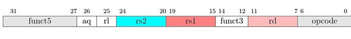 Figure 2 : Le format d'instruction de l'opération de mémoire atomique de RISC-V prend en charge les opérations binaires atomiques dans la mémoire de données avec une seule instruction. (Source de l'image : RISC-V.org, améliorée par Bill Giovino)