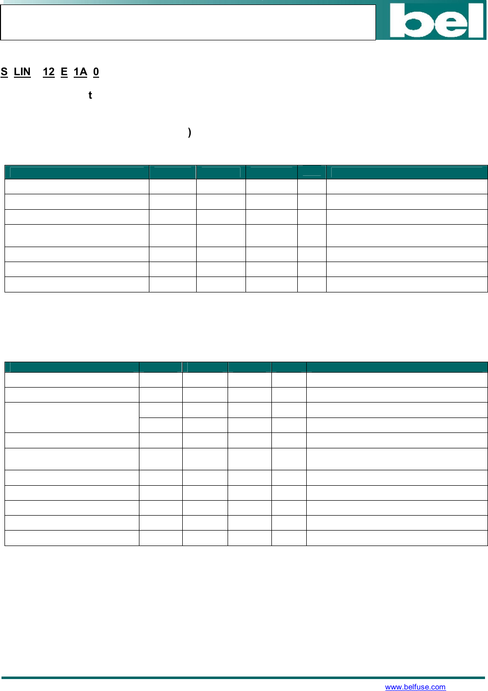 SLIN-12E1Ax Series Datasheet by Bel Power Solutions