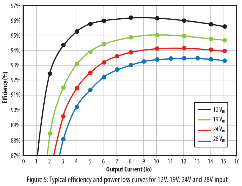 >95%, 12V in, 3.3V @ 4 ~ 15 A >94%, 19V in, 3.3V @ 5 ~ 15 A >93%, 28V in, 3.3V @ 8 ~ 15 A >93%, 24V in, 3.3V @ 6 ~ 15 A |